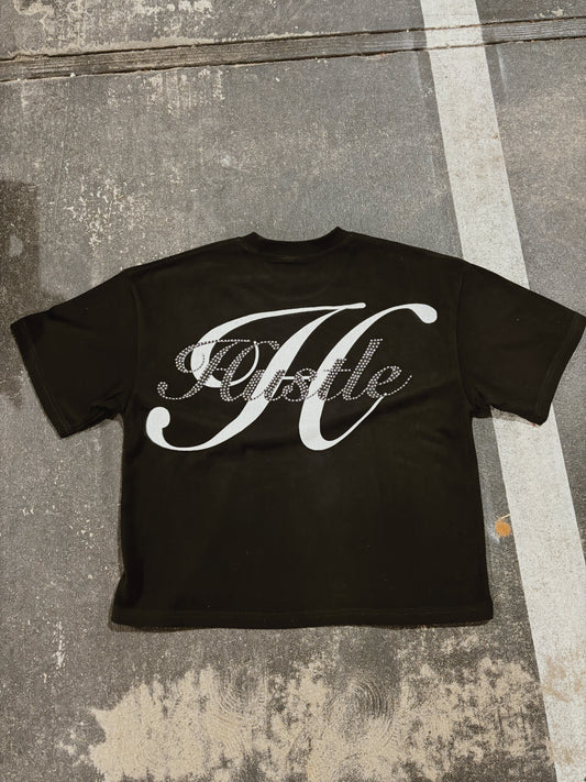 Sold outBlack oversize Rhinestone tee